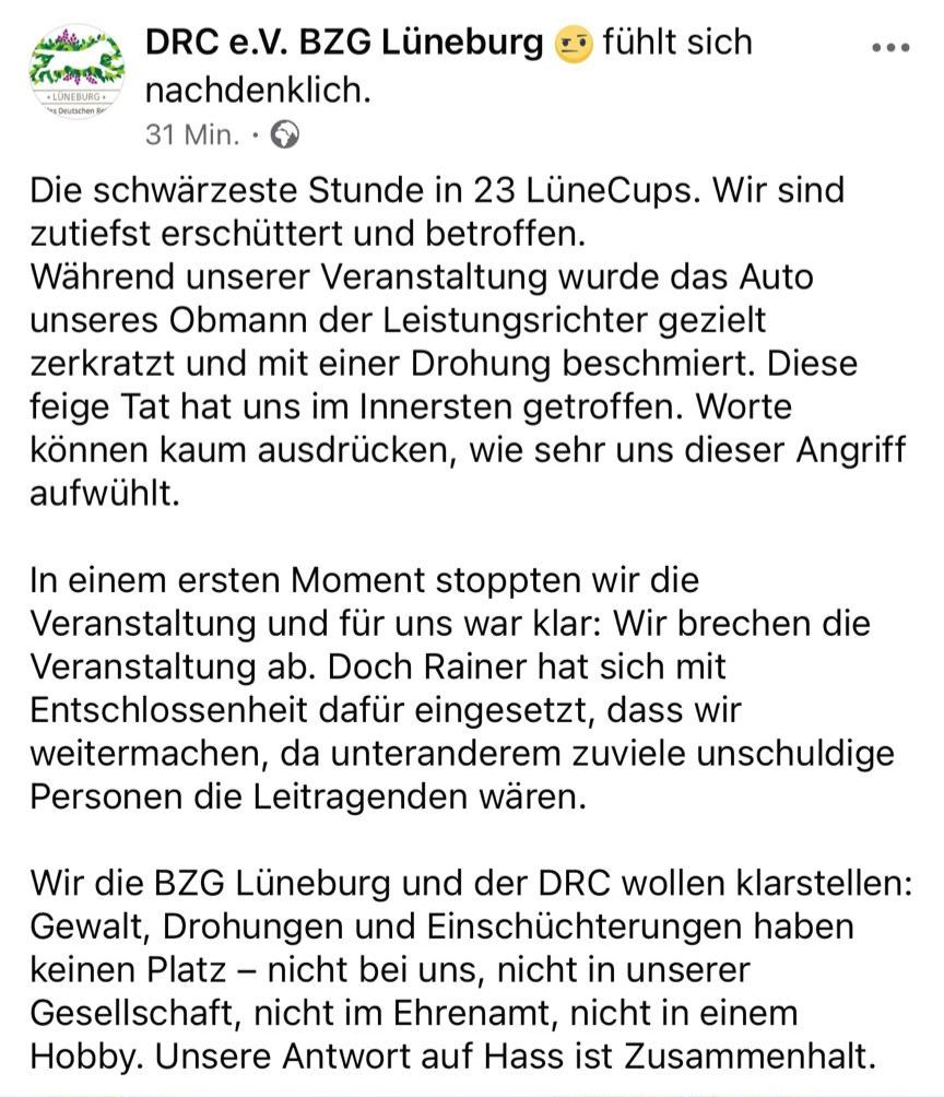 Der Vorstand der DRC Landesgruppe Weser-Ems distanziert sich von jeder Form von Gewalt und Drohungen gegenüber unseren Mitgliedern, ob mit oder ohne Amt!